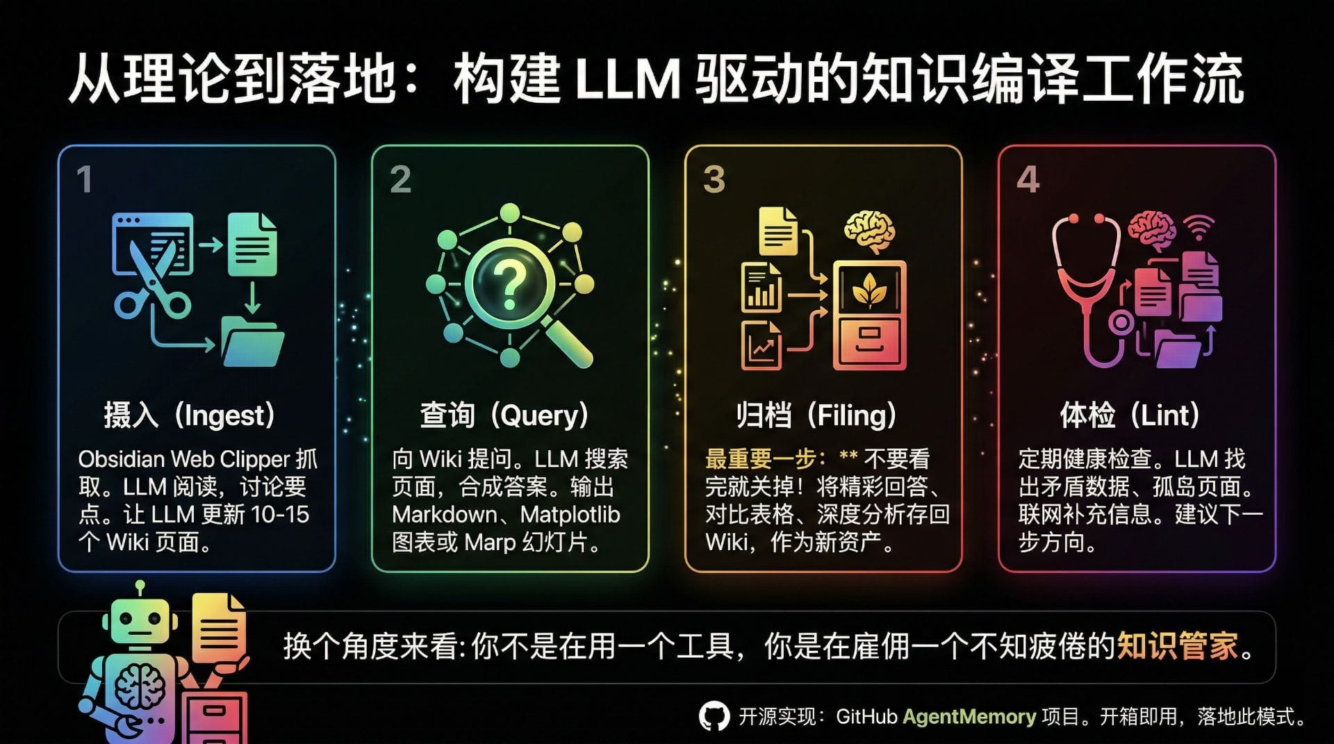 在短期内,随着开源社区(如 GitHub 上的 AgentMemory 项目)对该架构的复现和优化,我们将看到越来越多基于 Obsidian、Notion 等本地工具的“知识编译”插件涌现。用户将逐渐从“临时检索”的思维定势中觉醒,转向追求“持久编译”的知识复利。